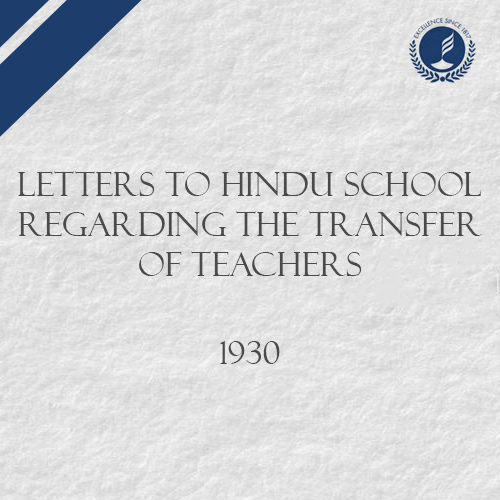 Letters to Hindu School regarding the Transfer of Teachers