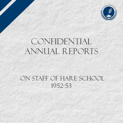 Confidential Annual Report on staff of Hare School, 1952-53