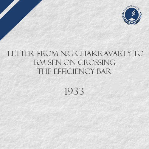 Letter from N.G Chakravarty to B.M Sen on crossing the efficiency Bar 1933